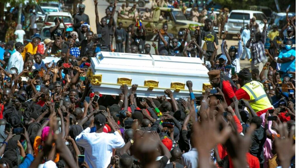 Les funérailles, qui se sont tenues dans le domicile familial, ont attiré des milliers de personnes, dont des membres de la famille, des amis proches, des artistes, des partisans politiques, des connaissances et de nombreux fans. La cérémonie a été marquée par des performances musicales en hommage à son œuvre, à la veille de ses obsèques malheureusement les artistes ont été dispersés à coup de gaz lacrymogènes par les forces de l’ordre.