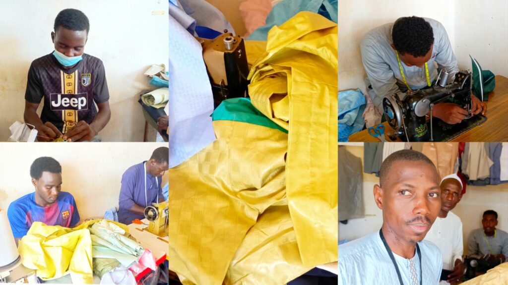 Brahim Mahamat Oumar, licencié en géographie et couturier au quartier Amriguébé, affirme que dans son atelier, le prix reste toujours le même, mais le volume de travail est devenu énorme. Brahim coud les habits selon la valeur du tissu, parmi lesquels figure le tissu Gezner qu’il coud à 10 000 F, le tissu Shampo à 7 500 F, le tissu simple ordinaire à 3 500 F, et d’autres modèles comme la contre-veste à 15 000 F. Le couturier affirme avoir reçu plus de 300 tissus de différentes couleurs et qualités à coudre en une semaine. « Nous travaillons 24h/24 pour finir les habits des clients avant la fête. Nous avons juste le temps pour la prière et la rupture du jeûne, puis nous nous remettons à travailler jusqu’à l’aube », dit-il. Selon lui, « les difficultés que nous rencontrons sont liées à la coupure d’électricité, ce qui rend le travail difficile ».