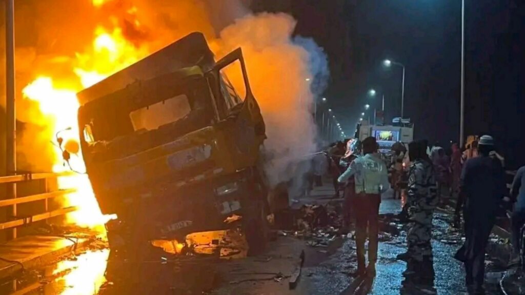 Un camion de transport de bagages transportant des marchandises a pris feu dans la soirée du mardi 11 novembre 2025 sur le pont à double voies entraînant un important embouteillage dans les deux sens. Mais aucune perte en vie humaine ne soit signalée.