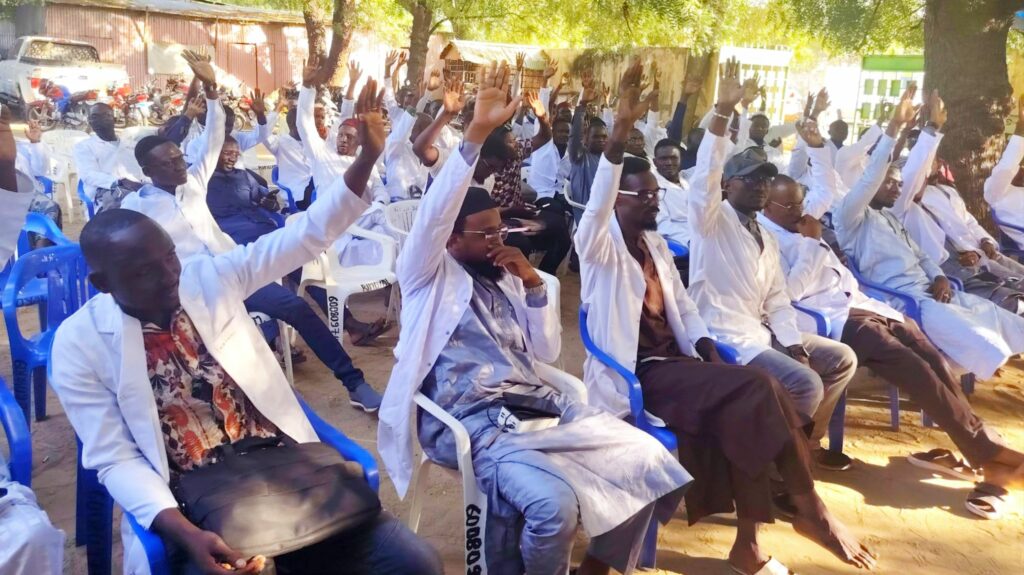 Les médecins tchadiens, mobilisés dans leur siège vêtus en blouse blanche (habits de service), réclament le statut particulier de médecin, une amélioration des conditions de travail… depuis plus de deux mois. Les participants à l’Assemblée ont exprimé leur frustration face à la stagnation des négociations avec le ministère de la Santé. L’Assemblée a enregistré la participation de plus des deux tiers des membres actifs, assurant ainsi le quorum requis pour la validité des délibérations. Après des échanges constructifs, les participants ont constaté que les engagements pris par les autorités n’ont pas fait l’objet d’une mise en œuvre effective et que les préoccupations urgentes des médecins restent non satisfaites. Les médecins ont décidé de renouveler le mot d’ordre de grève pour une durée de deux (02) semaines, à compter du Mardi 06 Janvier 2026, renouvelable une fois, sur toute l’étendue du territoire national. Par contre un service minimum obligatoire sera assuré dans les services d’urgences, la dialyse, la réanimation, les salles d’accouchement, les dispensaires d’ARV et les services antituberculeux.