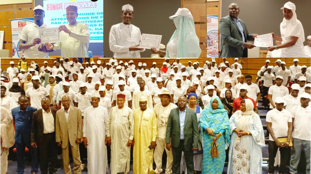Le Fonds National d’Appui à la Formation Professionnelle (FONAP) a procédé à la cérémonie de remise des attestations de fin de formation par apprentissage aux 400 jeunes vacanciers de la ville de Ndjamena dans 18 métiers différents, ce mardi, 30 septembre 2025 dans la salle du ministère des affaires étrangères.